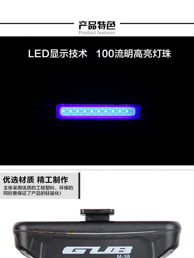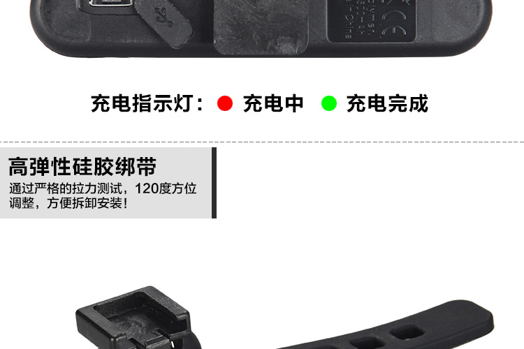 特性:LED技術(shù),COB整面發(fā)光,高亮100流明設(shè)計(jì),實(shí)現(xiàn)整體流暢設(shè)計(jì);配備USB接口,可循環(huán)充電;2種模式7種效果可循環(huán)切換;電池自動保護(hù)功能,電壓低于2.8V不工作;硅膠捆扎固定方式,120度方位調(diào)整,方便拆卸安裝;方型背扣設(shè)計(jì),可橫向和縱向不同角度安裝;可安裝在坐管,下叉,車把手,前叉等。