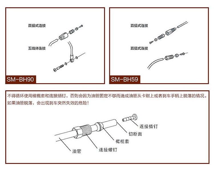 說(shuō)明:欖頭是靠變形包在油管上起到固定與密封作用的,使用后的橄欖頭會(huì)變形且不可拆卸,所以鎖橄欖頭是一次性的。shimano剎車(chē)油管分為BH90/BH59,不同油管需要使用對(duì)應(yīng)橄欖頭跟油針。