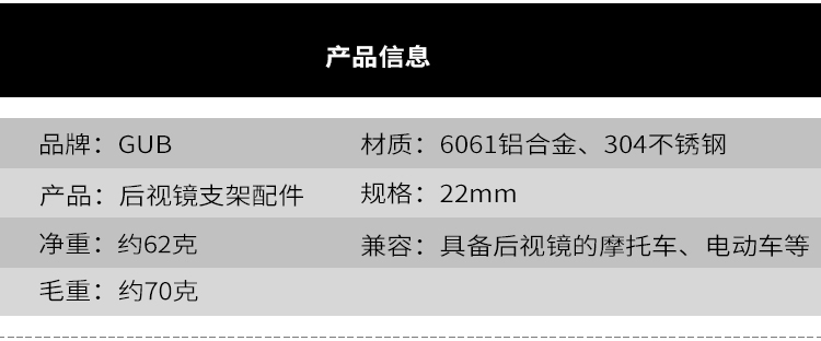 名稱:GUB摩托車后視鏡支架配件