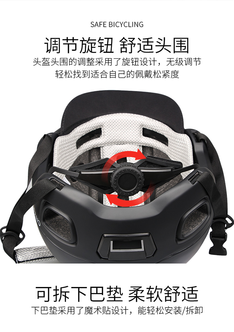 特色:簡潔大方的外觀設計,融入聰明的設計更適合城市休閑騎行,個性可拆卸軟性帽檐,尾部帶警示燈安裝位,尾部加強透氣孔可鎖在車上減少拎取。