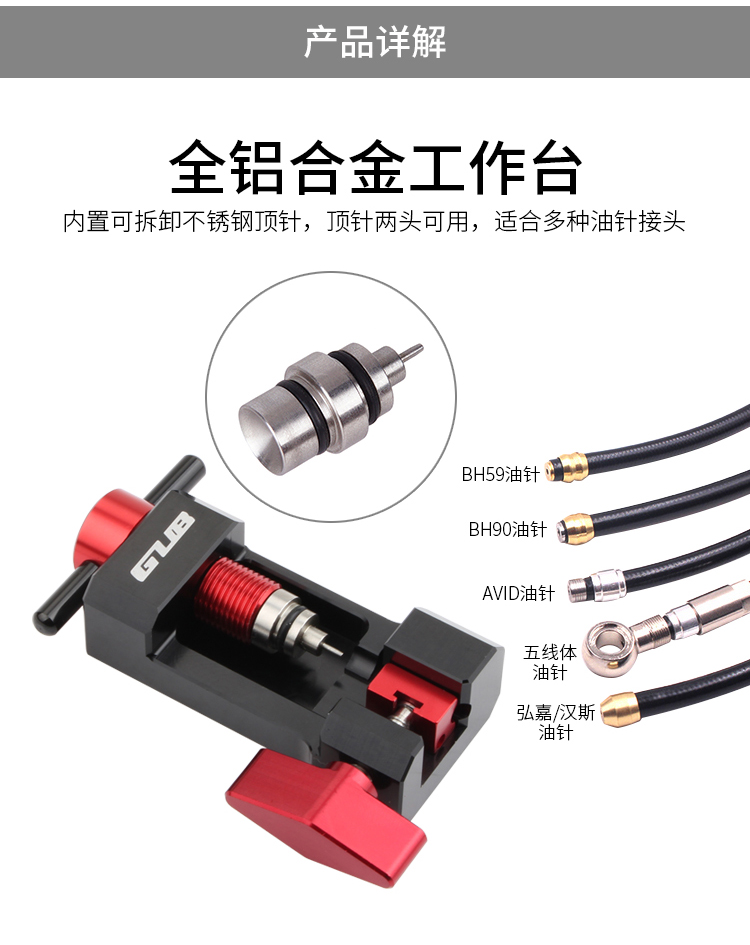 材質(zhì):全鋁合金臺+不銹鋼頂針(油針壓入工具),ABS工程塑料+不銹鋼刀片(油管切割器)