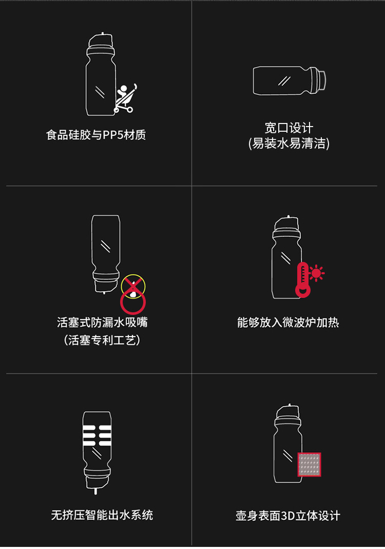 簡介:智能出水,無需擠壓,防漏水吸嘴,耐熱易清潔,3D防滑瓶身等