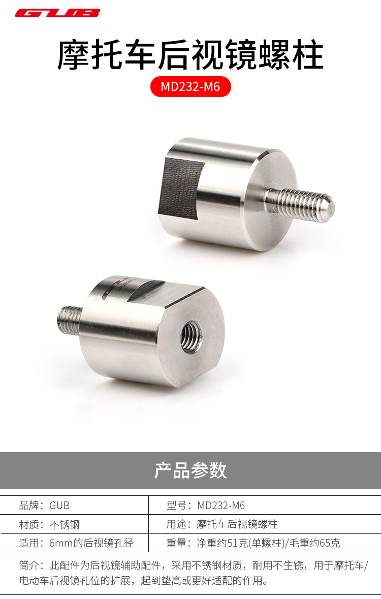 產(chǎn)品:GUB MD232-M6 摩托車(chē)后視鏡螺柱