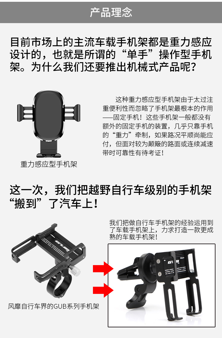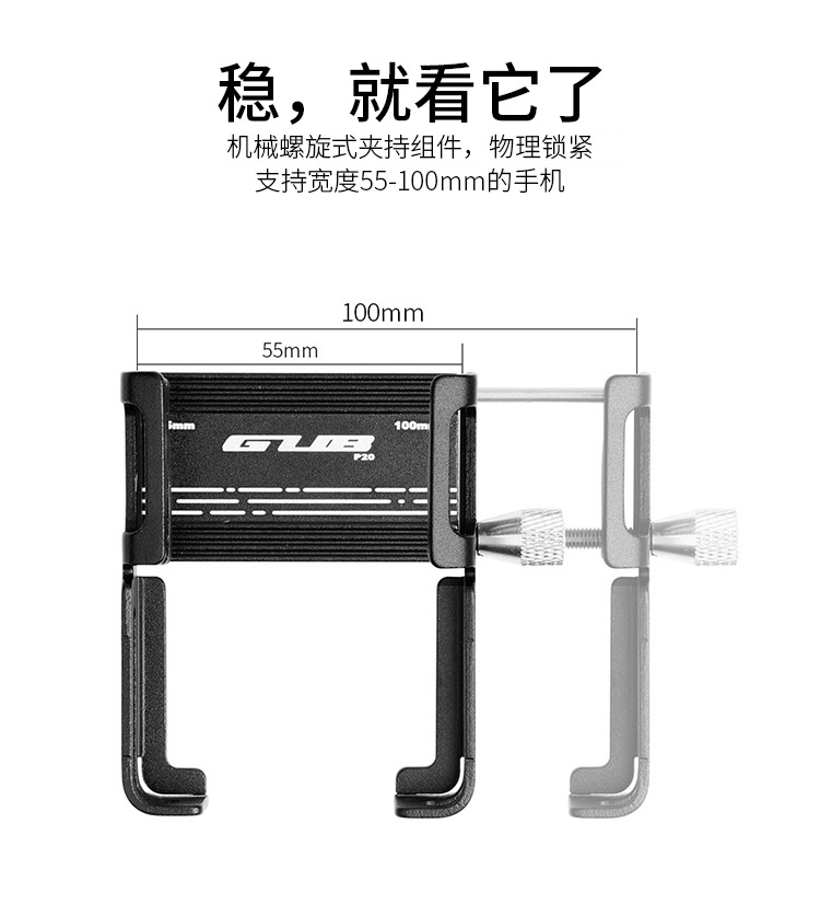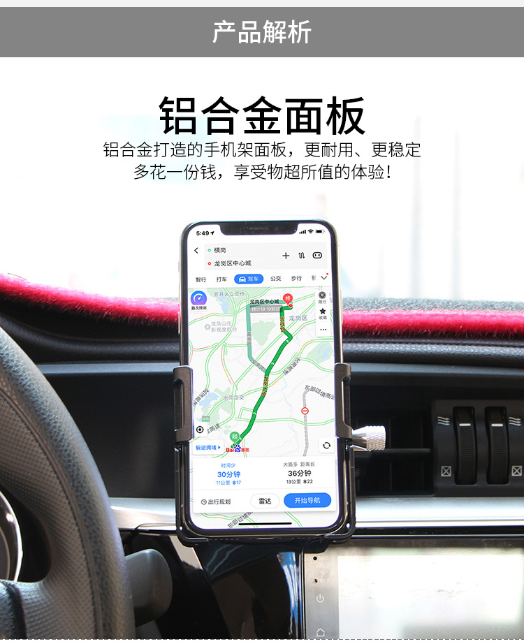特點:鋁合金架體+PC固定組件,55-100mm寬度的手機均可使用,萬向球+可旋轉(zhuǎn)夾口讓使用更加隨心所欲!