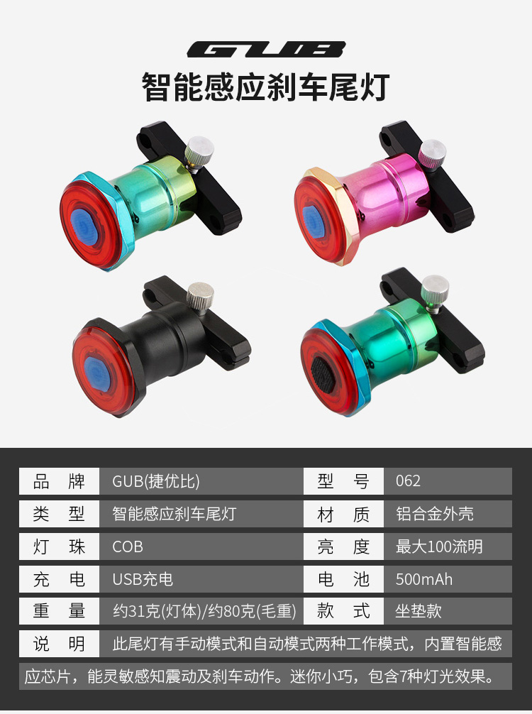 名稱:GUB 062 智能感應(yīng)剎車尾燈(座墊款)