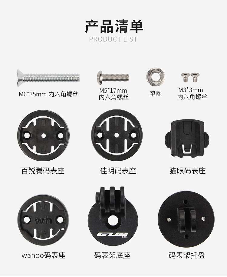 配置:配wahoo、佳明、百銳騰和貓眼碼表接座,兼容多種碼表,可調(diào)角度設(shè)計(jì)