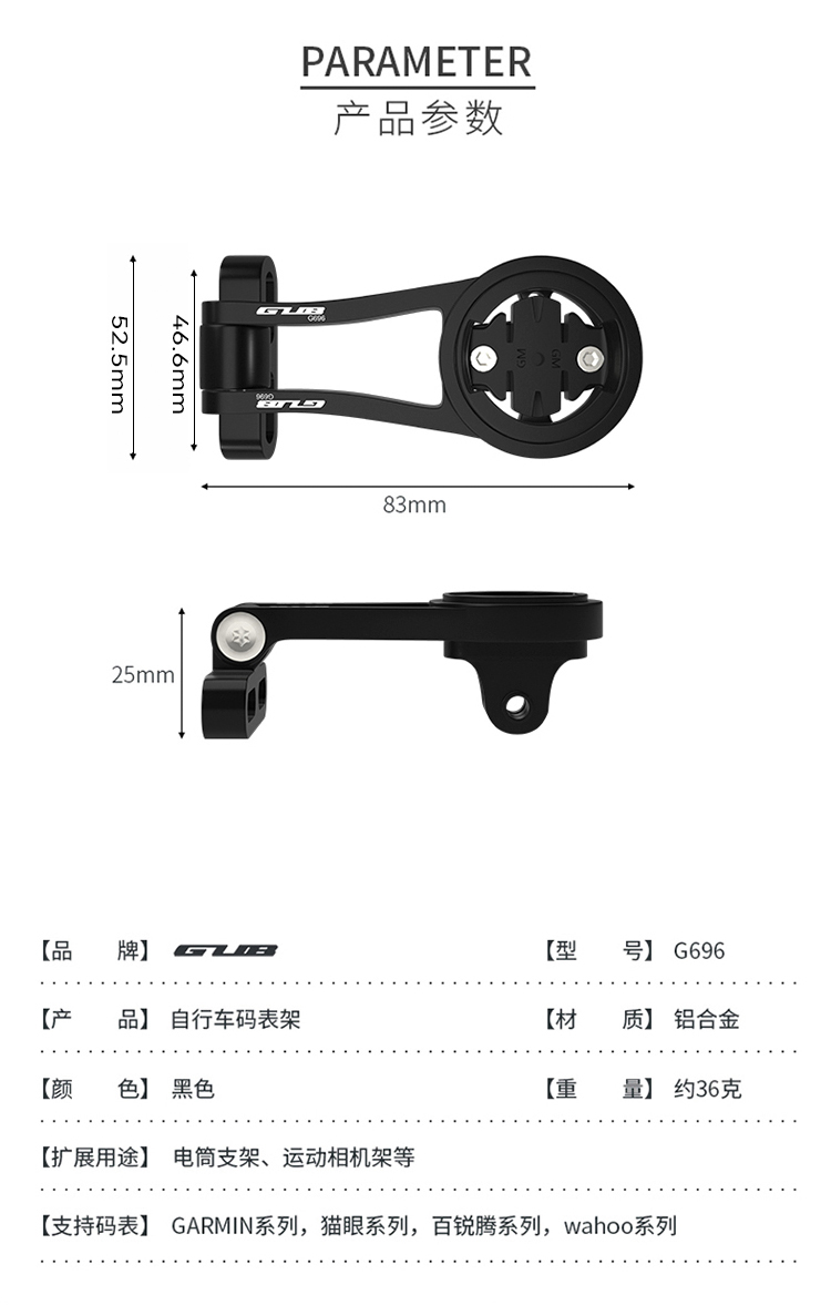 配置:配運動相機轉(zhuǎn)接座,wahoo、佳明、百銳騰和貓眼碼表接座