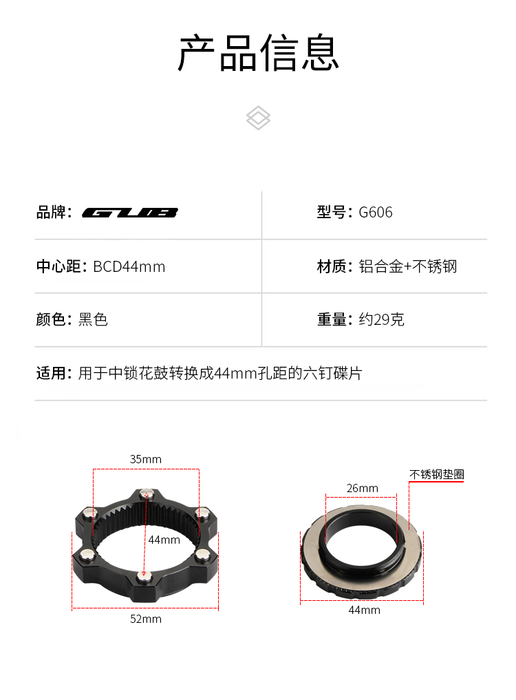 適用于:用于中鎖花鼓轉(zhuǎn)換成44mm孔距的六釘?shù)?/span>