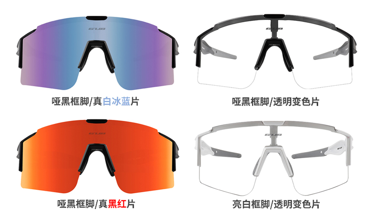 顏色:啞黑框腳/真白冰藍(lán)片、啞黑框腳/真黑紅片、啞黑框腳/透明變色片、亮白框腳/透明變色片