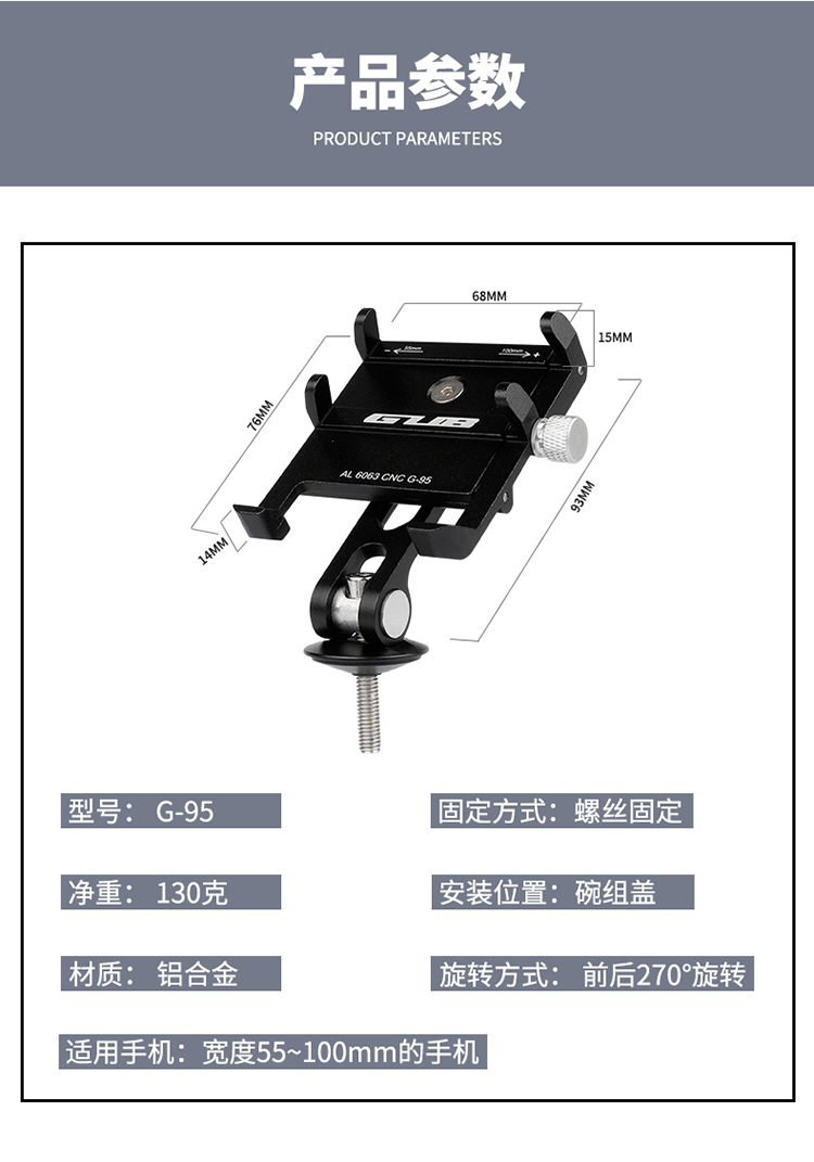 名稱:GUB G-95 鋁合金手機支架(碗組蓋固定)