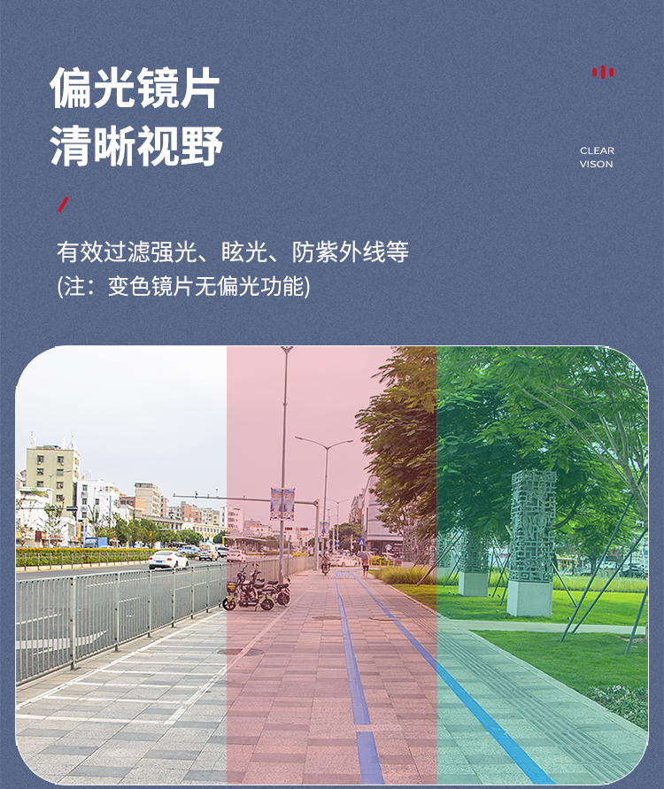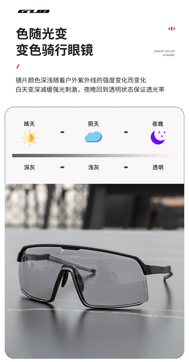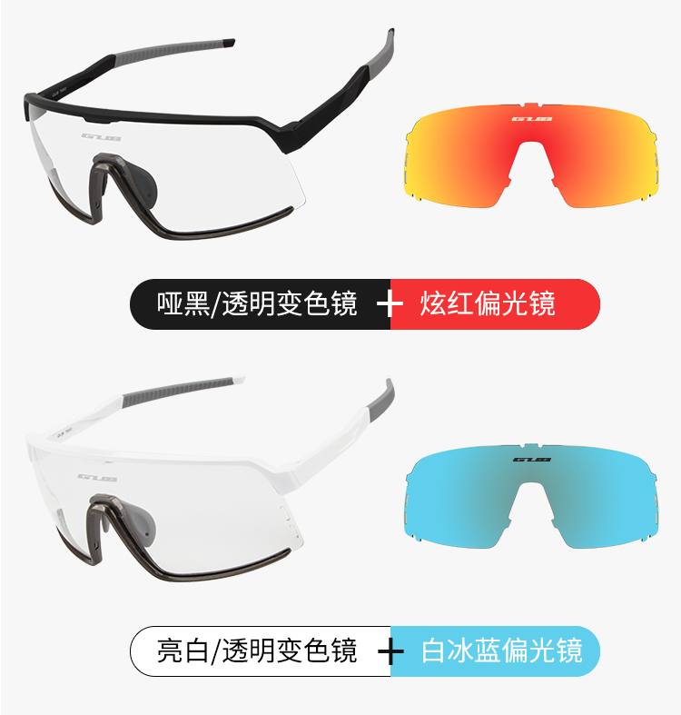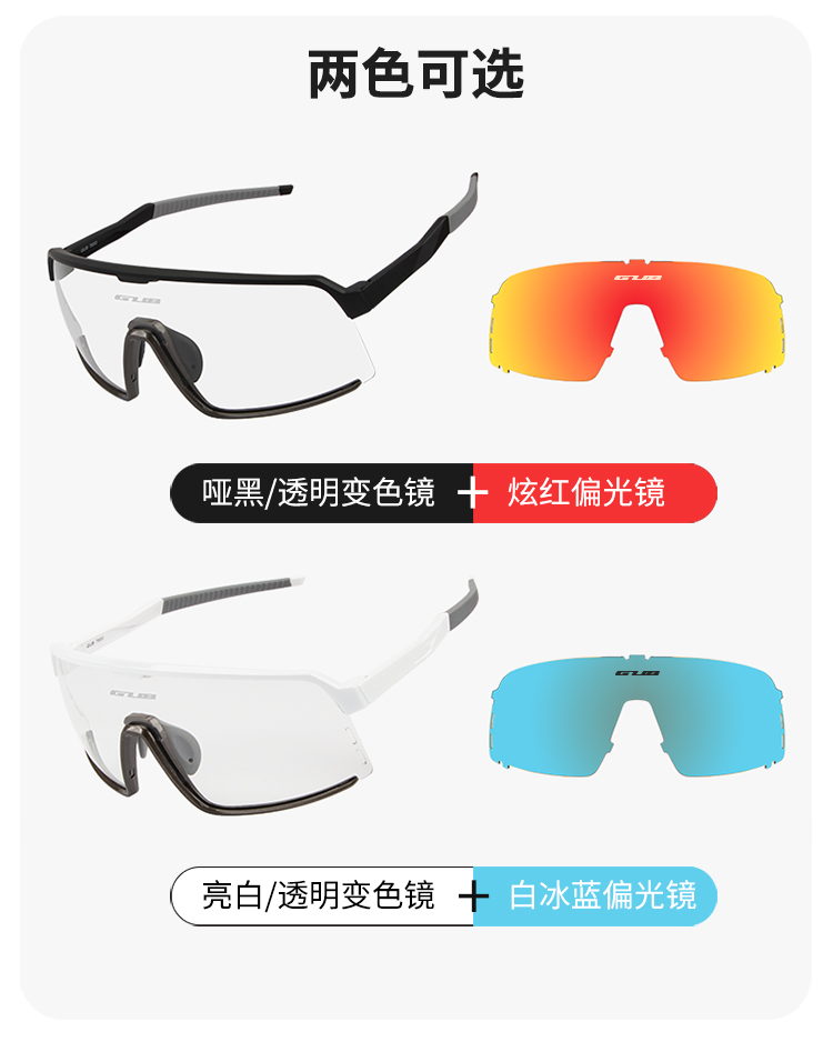 顏色:啞黑/透明變色+炫紅偏光、亮白/透明變色+白冰藍(lán)偏光