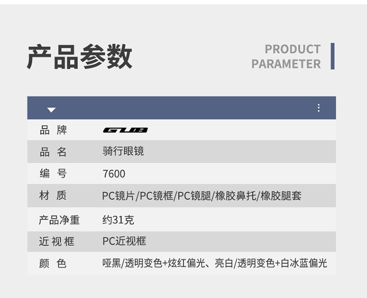 名稱:GUB 7600 騎行眼鏡