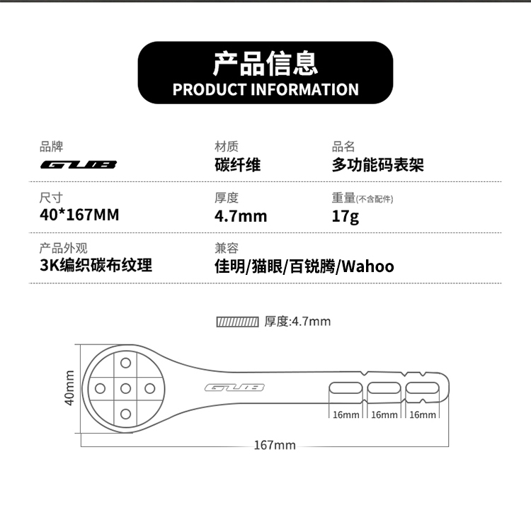 產品:GUB 695 碳纖維一體公路彎把碼表架