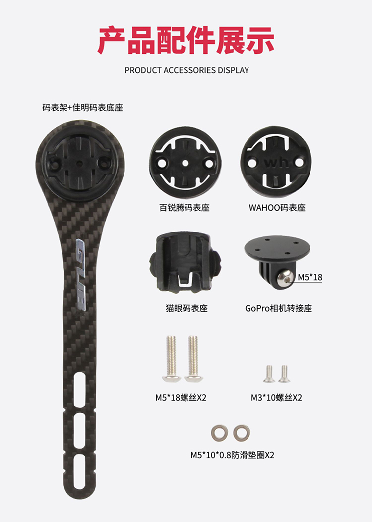 配置:配運動相機轉接座,wahoo、佳明、百銳騰和貓眼碼表接座