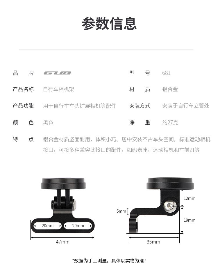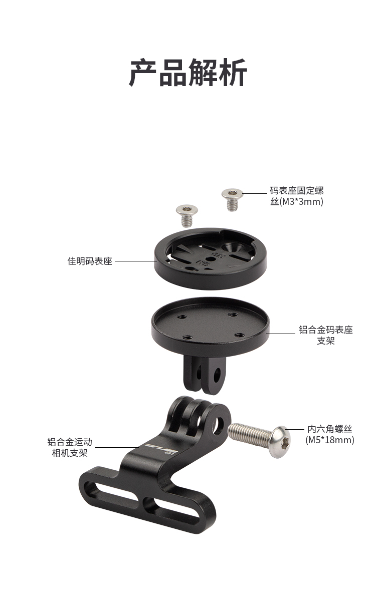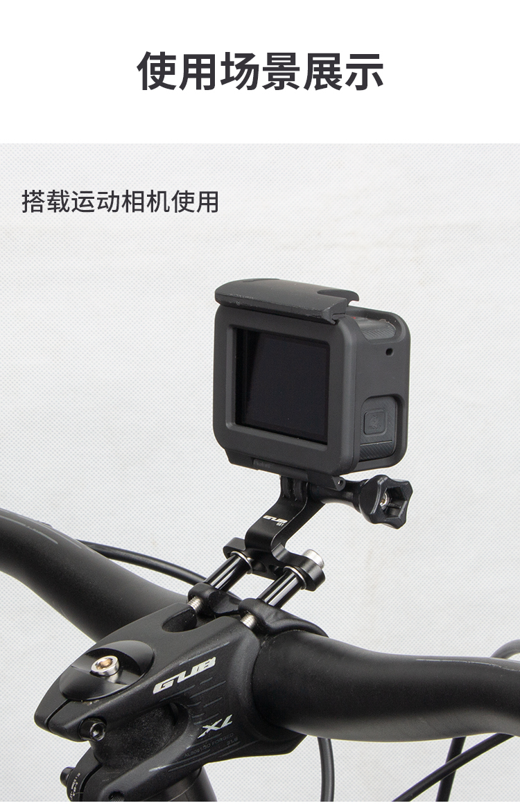 特點:鋁合金材質(zhì)堅固耐用,體積小巧、居中安裝不占車頭空間,標準運動相機接口,可接多種兼容此接口的配件,如碼表座,運動相機和車前燈等