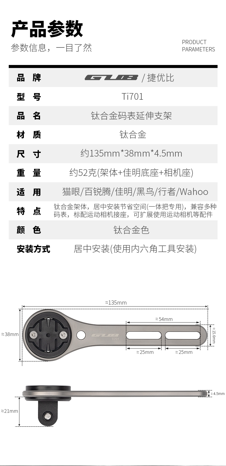 產(chǎn)品:GUB Ti701 鈦合金碼表架