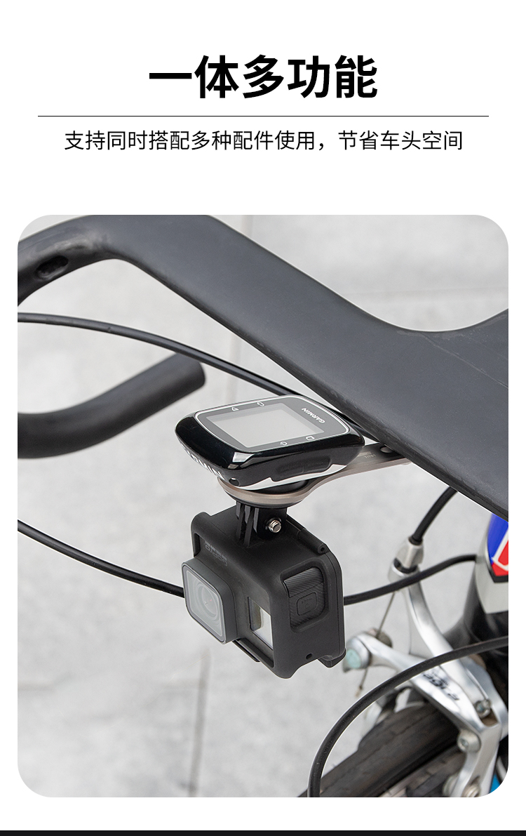 特點(diǎn):鈦合金架體,居中安裝節(jié)省空間(一體把專用),兼容多種碼表,標(biāo)配運(yùn)動相機(jī)接座,可擴(kuò)展使用運(yùn)動相機(jī)等配件
