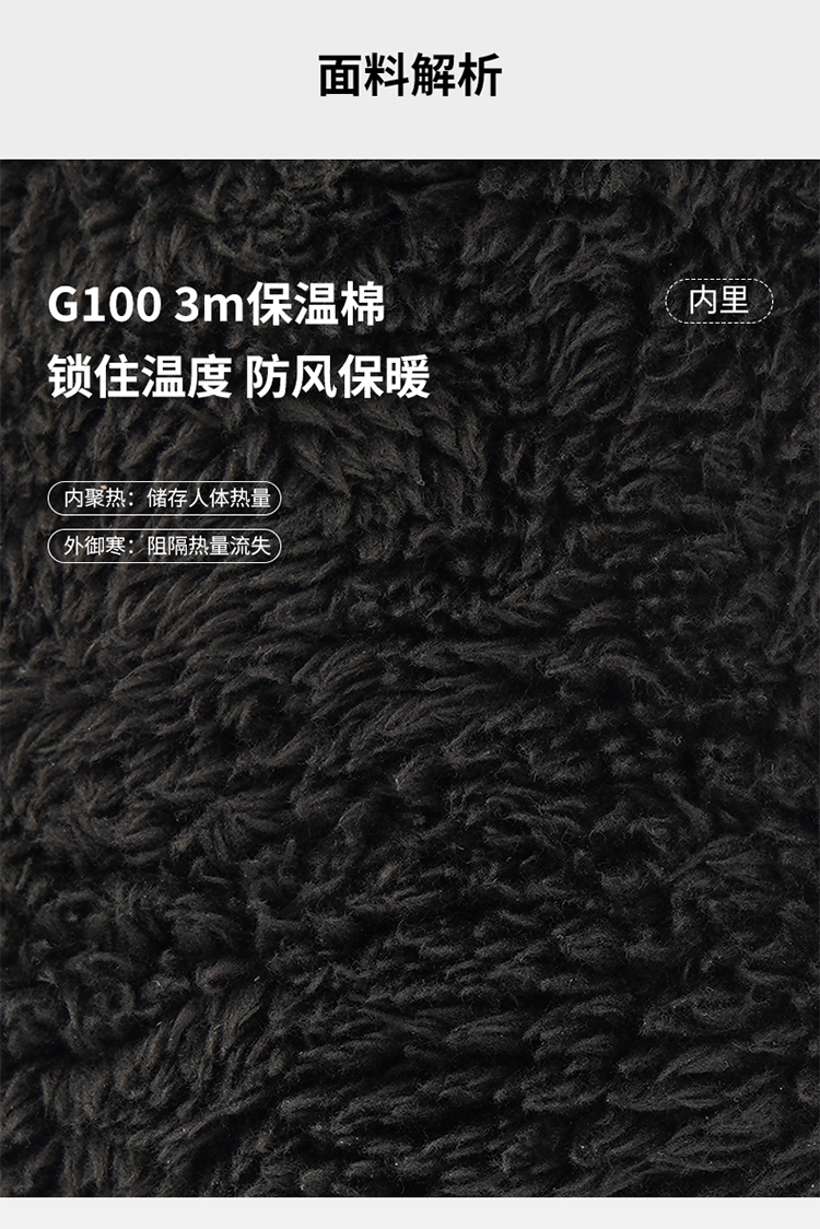 特點(diǎn):內(nèi)里加絨,抵御寒風(fēng),柔軟舒適,3D立體裁剪,防滑耐磨